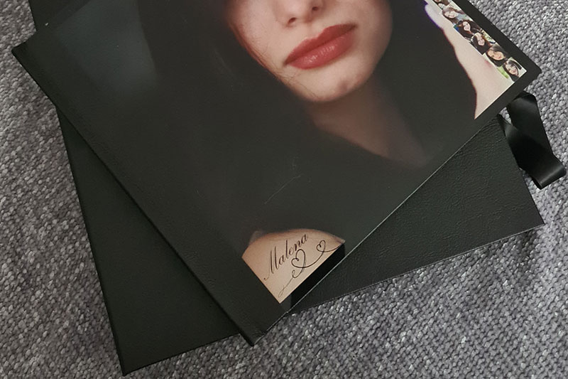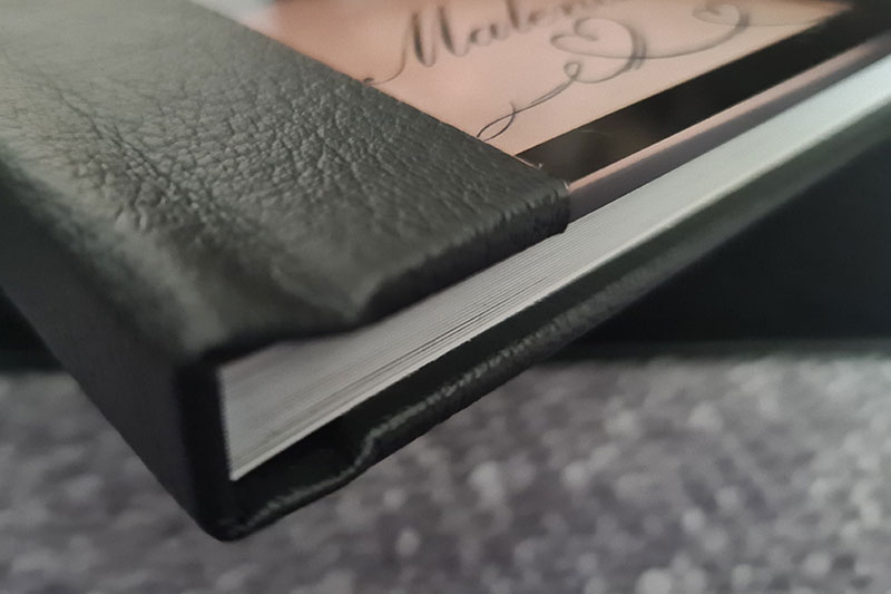 Ich habe mich für das Acrylglas-Cover mit schwarzem Ledereinband und mattes Papier entschieden. Zusätzlich habe ich die die Premium Geschenkbox in schwarzer Lederoptik bestellt.