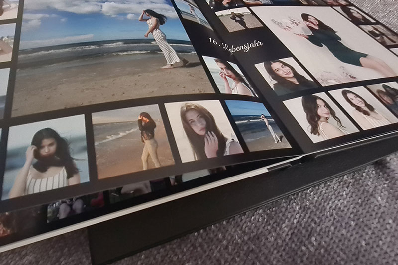 Die Druckqualität ist super, ebenso die Farbtreue. Trotz der vielen kleinen Bilder (bis zu 50 auf einer Doppelseite) ist alles super zu erkennen. Auch die Verarbeitung des Buches gefällt mir gut. Durch die Layflat-Bindung kann man die Bilder auch gut in der Mitte anordnen.